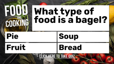 In this fun trivia quiz we're going to ask questions like "What type of food is a bagel?" and "What cookery term means leaving meat to soak in a sauce?".
