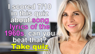 7/10 is the score to beat in this 1960s songs quiz to put yourself over the average quiz taker. But you're probably going to be able to answer questions "Who sang this song : "Be My Baby" back in the 60s?" and "Who sang this song : "Lady Madonna" around 1969?" easy!