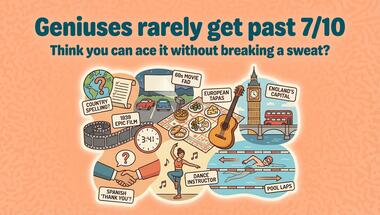 8/10 is the score to beat in this General knowledge quiz to put yourself over the average quiz taker. But you're probably going to be able to answer questions "What is the capital city of England?" and "How do you say "thank you" in Spanish?" easy!