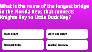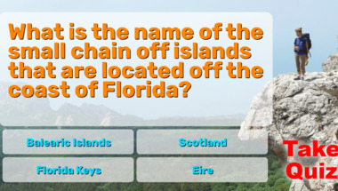 In this fun trivia quiz we're going to ask questions like "What is the name of the small chain off islands that are located off the coast of Flo.." and "What is the smallest US state by area?".