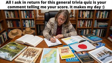 If you can answer "Who owns the factory in the book "Charlie and the Chocolate Factory"?" and maybe even "Nickelback's 2014 hit "Edge of a Revolution" was written about the ongoing war in wha.." there is a good chance that you're going to beat the average score of 7/10 in this General knowledge quiz