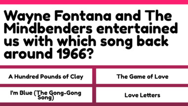 In this fun 1960s Songs quiz we're going to ask questions like "Stevie Wonder entertained us with which song back around 1967?" and "Wayne Fontana and The Mindbenders entertained us with which song back around 1966?".