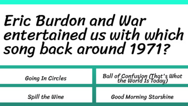 Look forward to questions like "Who played "We Gotta Get Out Of This Place" during the 1960s?" and "Who played "Get Ready" during the 1960s?"