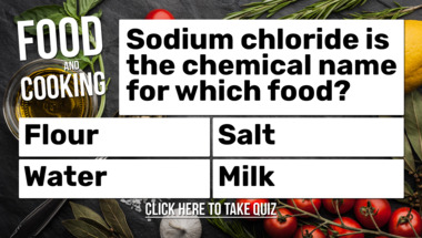 7/10 is what people on average are scoring in this trivia quiz so far. Are you ready to answer questions like "Sodium chloride is the chemical name for which food?" and "What cookery term means cutting vegetables into long, thin batons?"