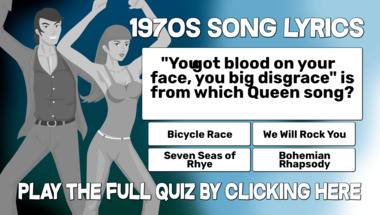 In this fun trivia quiz we're going to ask questions like ""You got blood on your face, you big disgrace" is from which Queen song?" and "Dire Straits were the Sultans of what in 1979?".
