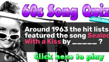 In this fun trivia quiz we're going to ask questions like "Around 1964 the hit lists featured the song "Hello Muddah, Hello Faddah (A Letter fro.." and "Around 1963 the hit lists featured the song " Sealed With a Kiss" by _____ ?".