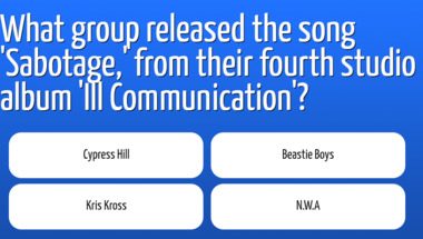 3/10 is the score to beat in this trivia quiz to put yourself over the average quiz taker. But you're probably going to be able to answer questions "What group released the song 'Sabotage,' from their fourth studio album 'Ill Communic.." and "In 1997, which artist released the UK number 1 album 'Blur'?" easy!