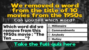 8/10 is the score to beat in this trivia quiz to put yourself over the average quiz taker. But you're probably going to be able to answer questions "Which word did we remove from this 1950s movie : "How to Marry a ____"?" and "Which word did we remove from this 1950s movie : "The Ten ____"?" easy!