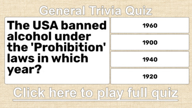 6/10 is what people on average are scoring in this trivia quiz so far. Are you ready to answer questions like "Which fruit is used to make cider?" and "The USA banned alcohol under the 'Prohibition' laws in which year?"