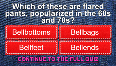 7/10 is the score to beat in this trivia quiz to put yourself over the average quiz taker. But you're probably going to be able to answer questions "Who is responsible for cleaning the rooms of a hotel?" and "Which of these are flared pants, popularized in the 60s and 70s? " easy!