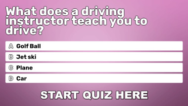 In this fun trivia quiz we're going to ask questions like "What does a driving instructor teach you to drive?" and "Which huge African animal has a horn or two on its nose?".