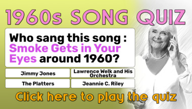 In this fun trivia quiz we're going to ask questions like "Who sang this song : "Smoke Gets in Your Eyes" around 1960?" and "Who sang this song : "I Fall to Pieces" around 1962?".