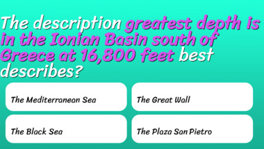 7/10 is what people on average are scoring in this Geography quiz so far. Are you ready to answer questions like "Mount Everest, Earth's highest mountain, lies in which mountain range?" and "Of these, which is a landmark in Europe?"