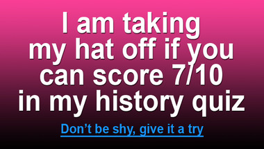 If you can answer "Who sung "These Boots Are Made For Walking"? " and maybe even "Which King of England had six wives?" there is a good chance that you're going to beat the average score of 7/10 in this History quiz