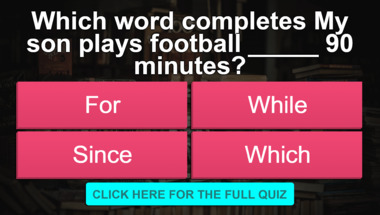 Look forward to questions like "Which word completes "My son plays football _____ 90 minutes"?" and "Which word completes "Daniel is _____ doctor"?"
