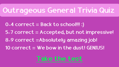Can you beat the average score of 5/10 in this quite fun General Trivia quiz?