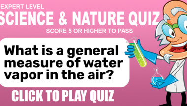 4/10 is the score to beat in this Science quiz to put yourself over the average quiz taker. But you're probably going to be able to answer questions "What is a general measure of water vapor in the air?" and "Which of these items will float in a glass of water?" easy!