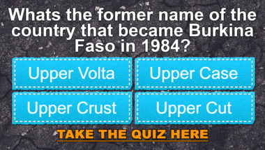In this fun trivia quiz we're going to ask questions like "What's the former name of the country that became Burkina Faso in 1984?" and "Who won the 1962 FIFA World Cup?".