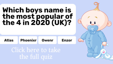Look forward to questions like "Which boys name is the most popular of the 4 in 2020 (UK)?" and "Which boys name is the most popular of the 4 in 2020 (UK)?"
