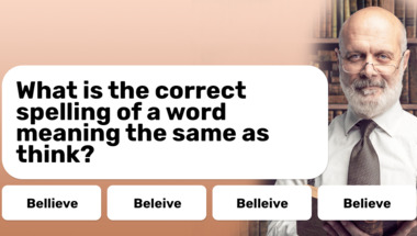 In this fun trivia quiz we're going to ask questions like "What is the correct spelling of a word meaning the same as think?" and "What is 0.81 as a percentage?".
