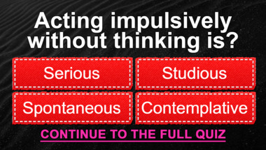 In this fun trivia quiz we're going to ask questions like "Acting impulsively without thinking is?" and "Complete the title of the HG Wells novel: 'The ….... Machine'?".
