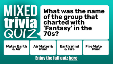 5/10 is what people on average are scoring in this trivia quiz so far. Are you ready to answer questions like "What was the name of the group that charted with 'Fantasy' in the 70s?" and "The Gaza Strip, Israel, Libya and Sudan border which country?"