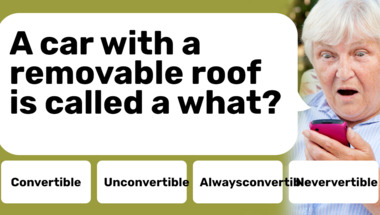 Look forward to questions like "A car with a removable roof is called a what?" and "What are the initials of the world governing body of soccer?"