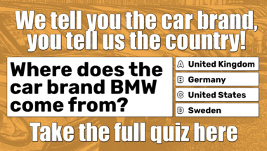 In this fun trivia quiz we're going to ask questions like "Where does the car brand Cadillac come from?" and "Where does the car brand BMW come from?".